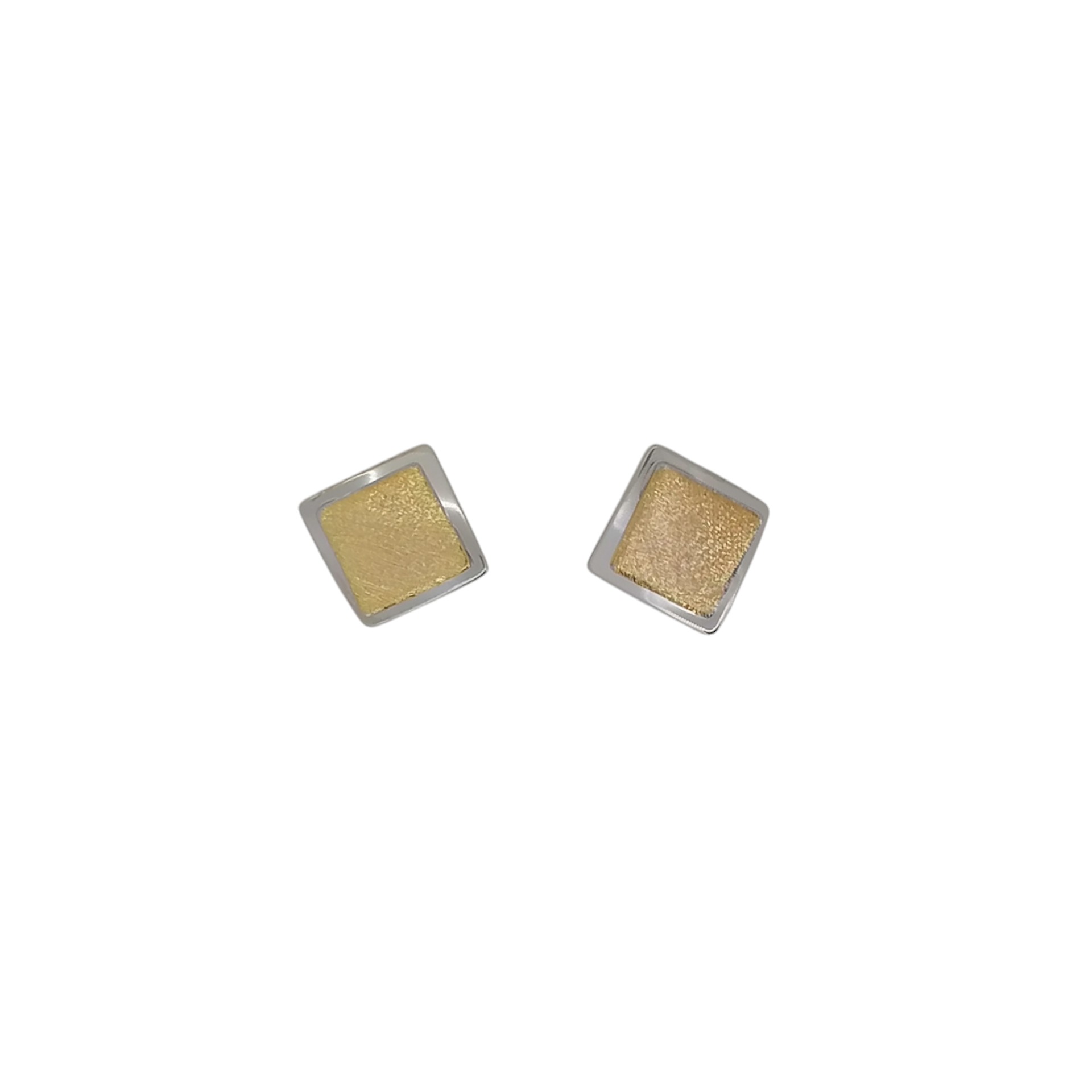 Σκουλαρίκια αυτιών διπλό τετράγωνο13mm μιξ μεταλ